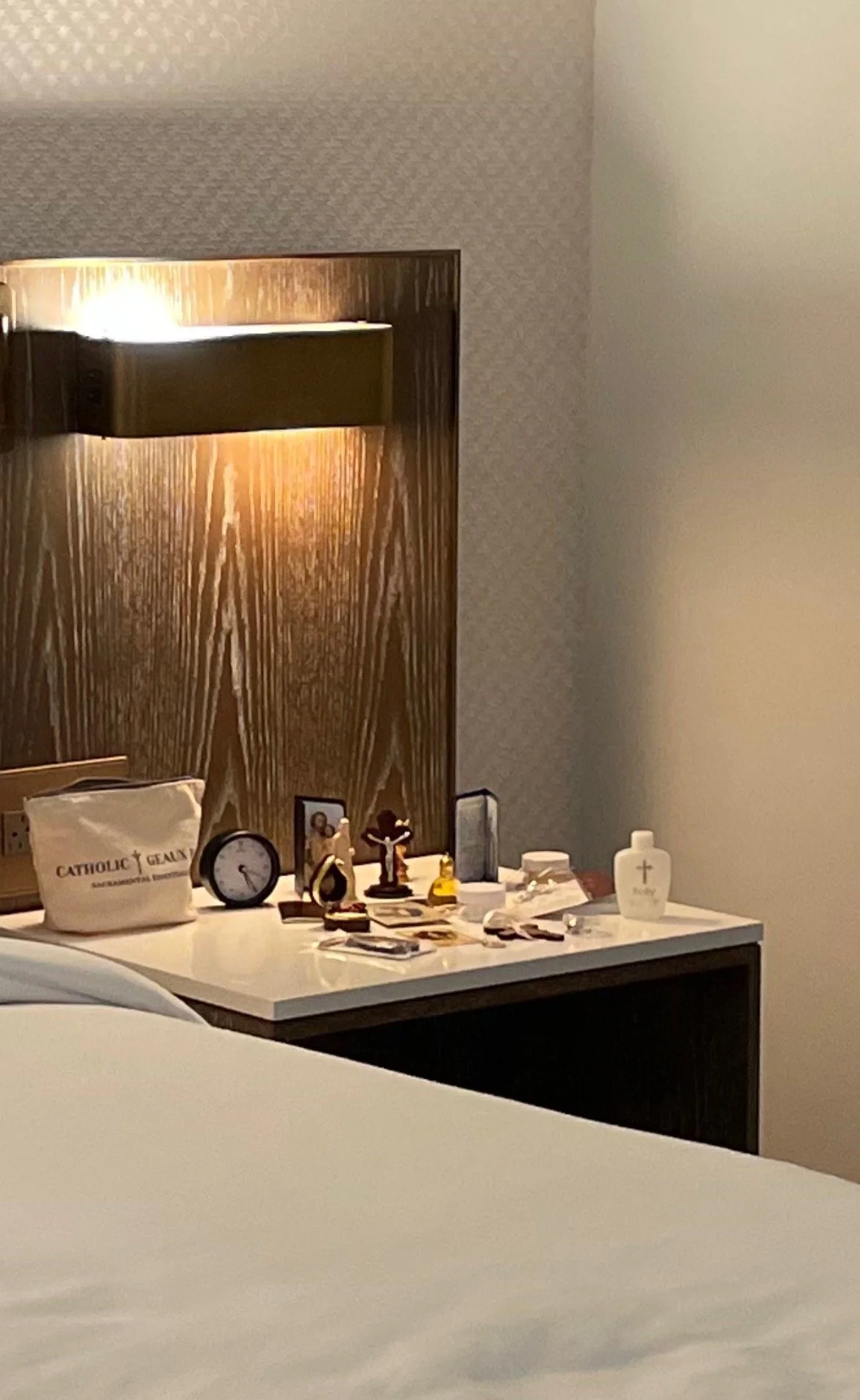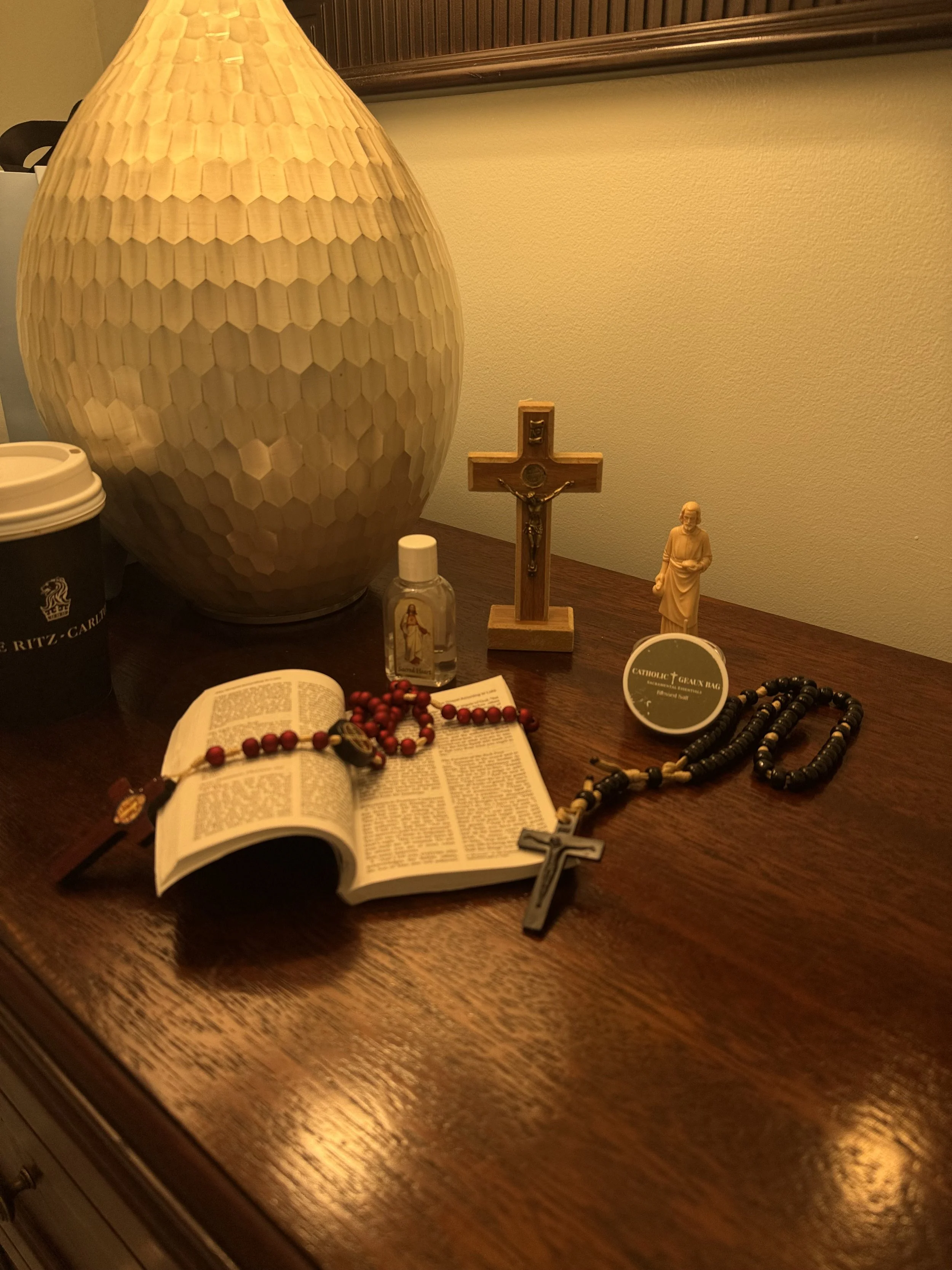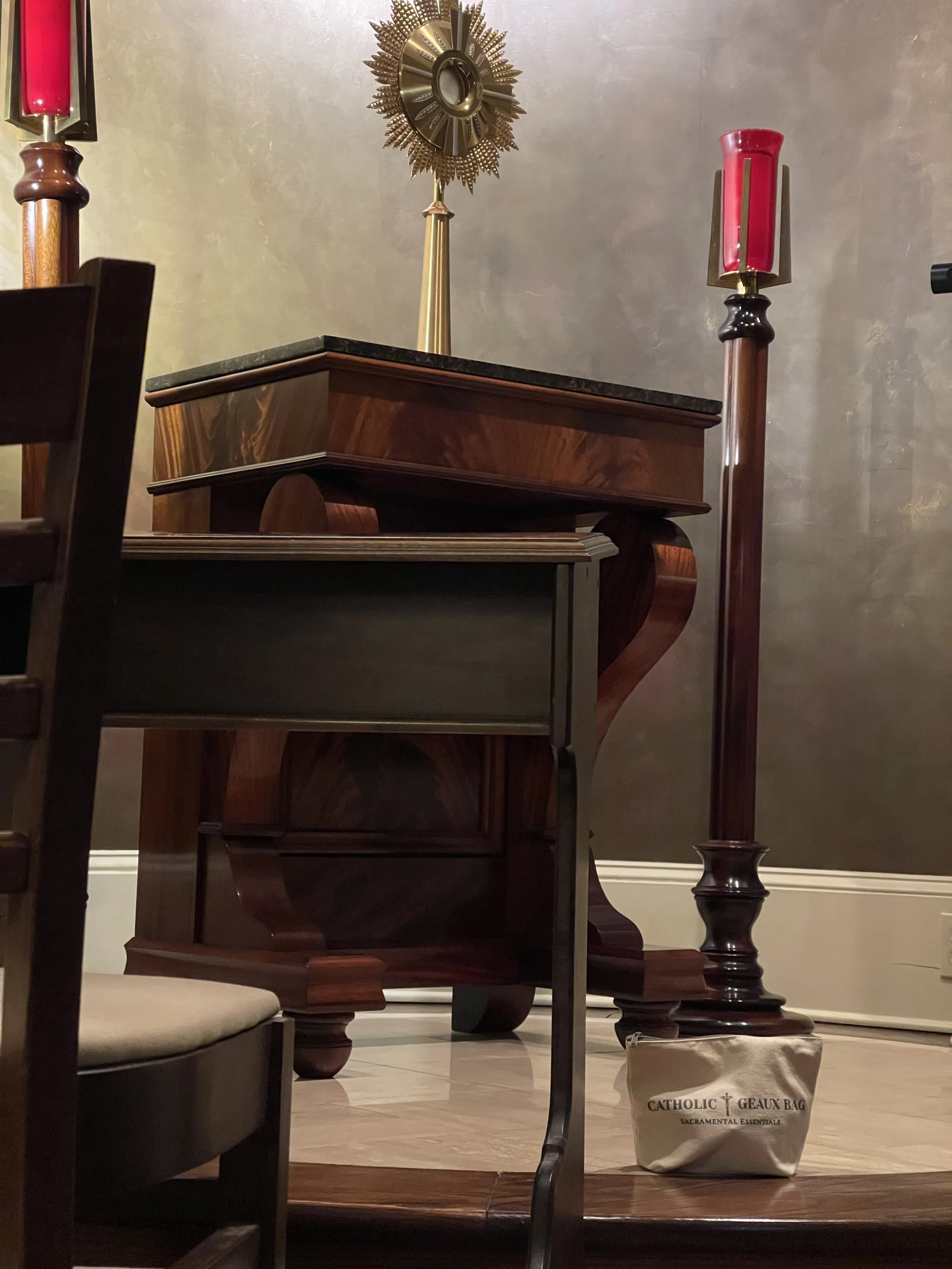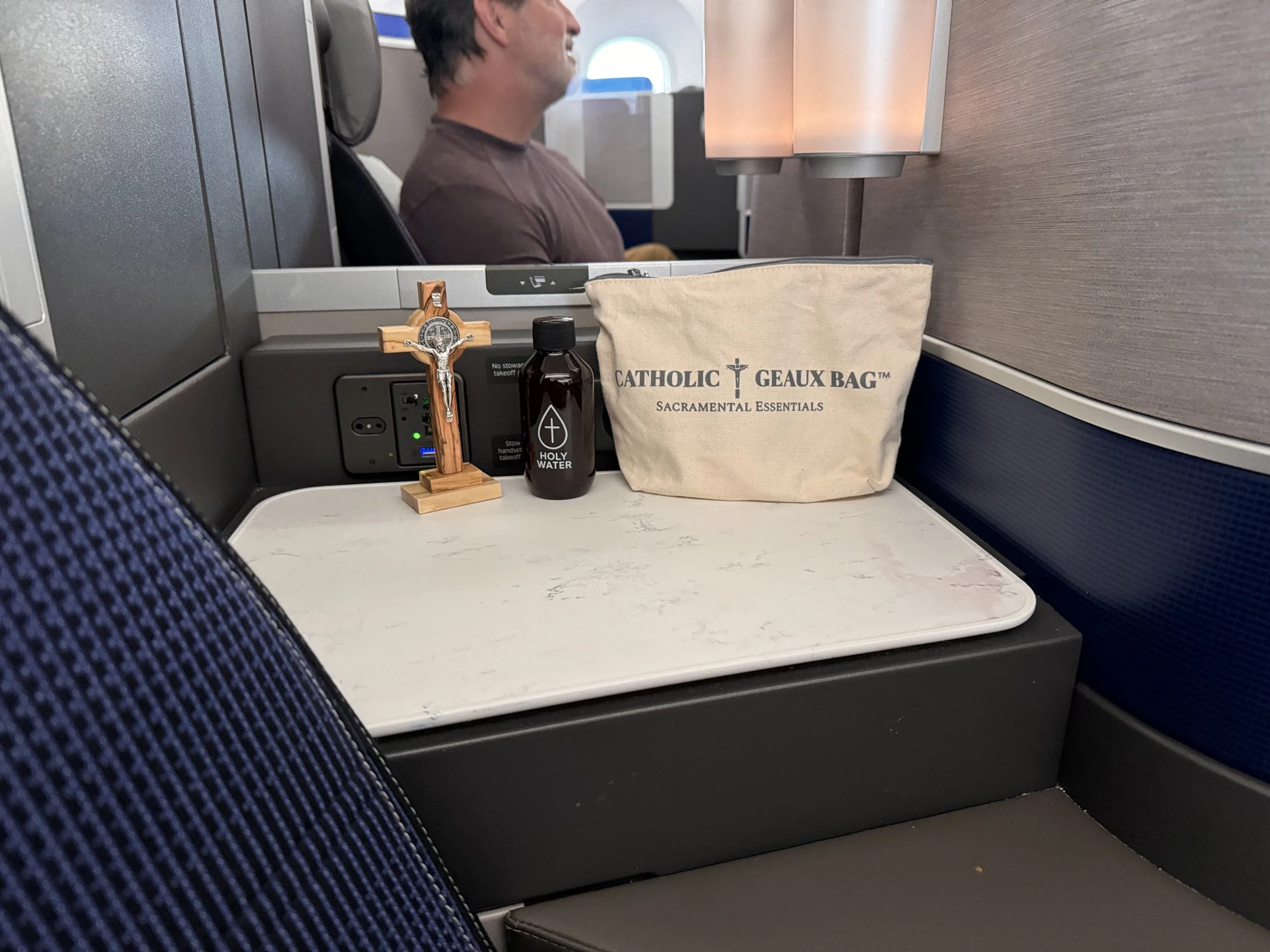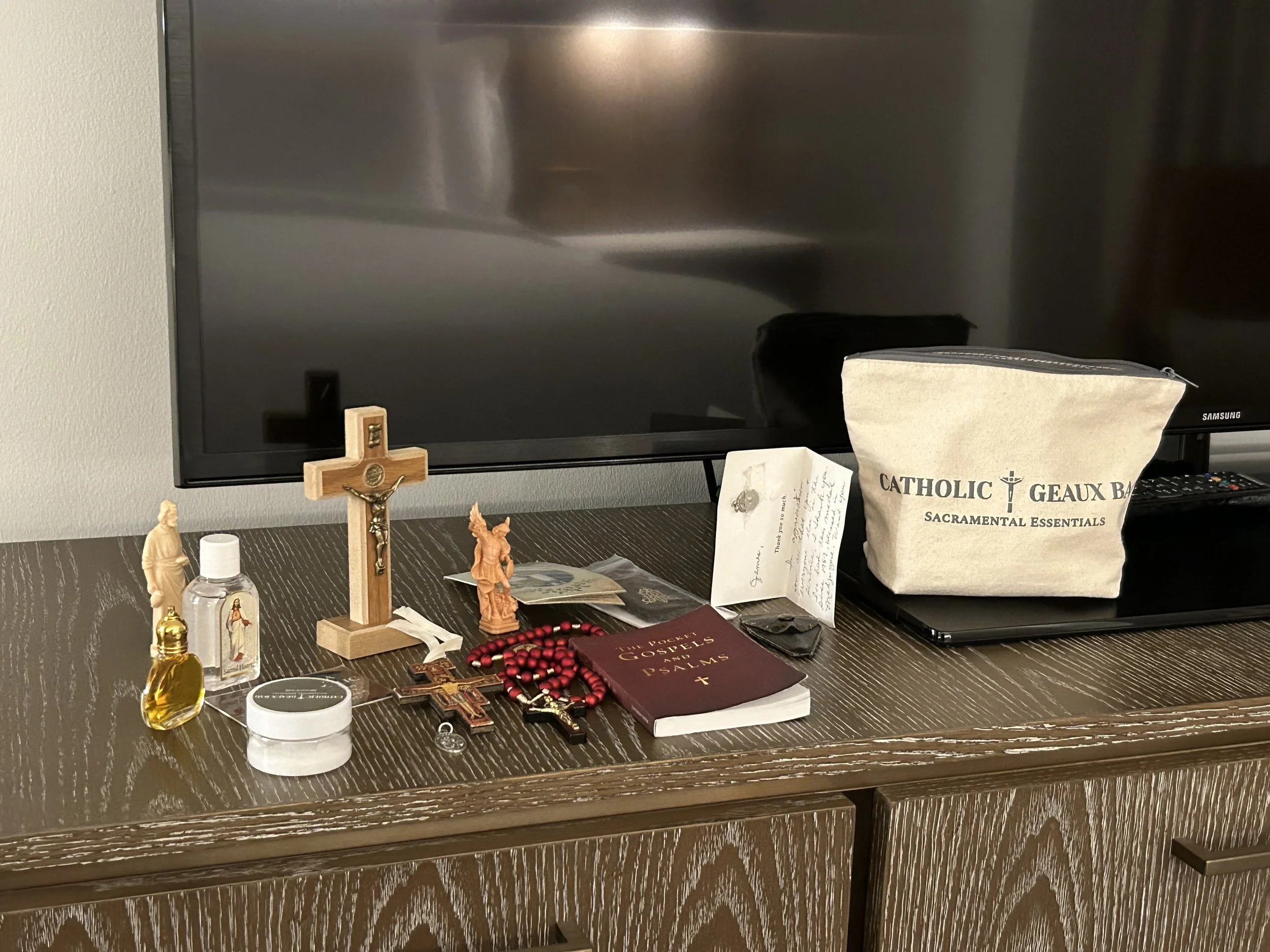 “I travel a lot for business and when I set up my Catholic Geaux Bag in my hotel room; I feel connected to my family back home. ”